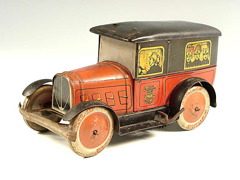 G. de ANDREIS (FRANCE) Fourgonnette des sapeurs-pompiers en tôle lithographiée rouge & noir