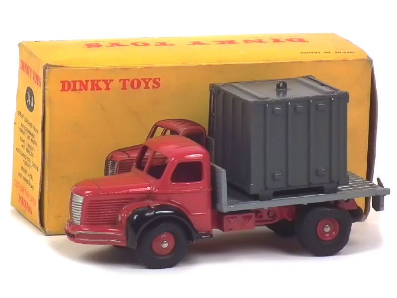 DINKY TOYS (FRANCE) 34B BERLIET Plateau avec container (version avec anneau moulé) rouge, plateau gris clair