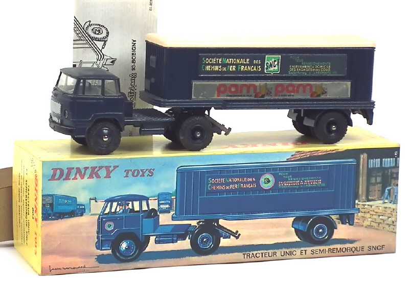 DINKY TOYS (FRANCE) 803 UNIC Semi-remorque 'S.N.C.F PAM PAM' bleu foncé, toit crème