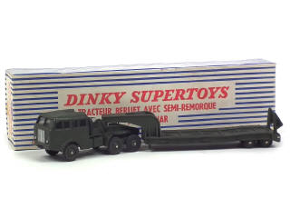 DINKY TOYS (FRANCE) 890 BERLIET Transport de char (version avec jantes du tracteur & de la remorque convexes) kaki