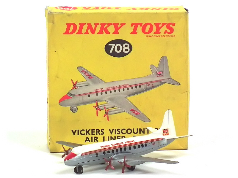 DINKY TOYS (GB) 708 VICKERS VISCOUNT 'BRITISH EUROPEAN AIRWAYS' gris métal, crème & rouge