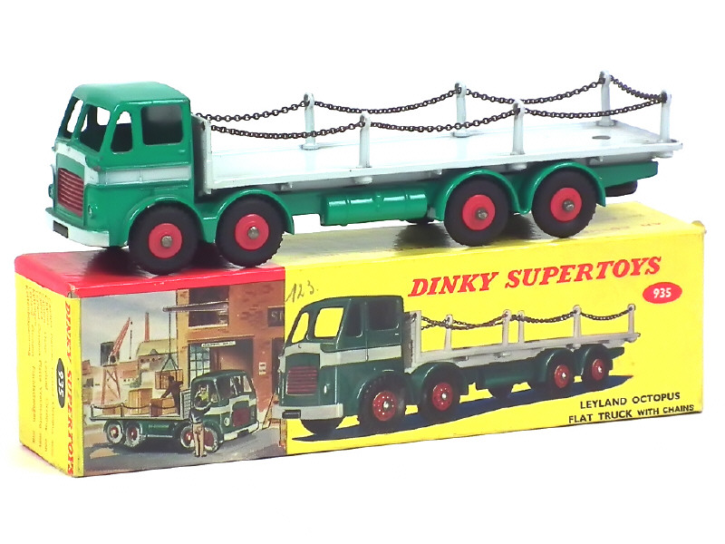DINKY TOYS (GB) 935 LEYLAND OCTOPUS Plateau à chaînes vert & gris clair, jantes rouges