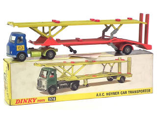 DINKY TOYS (GB) 974 A.E.C. Transporteur de voitures bleu métal, jaune & orange