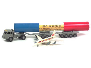 version avec décalque 'BOURGEY-MONTREUIL' sur le fronton de la cabine du tracteur & pile avec décalques 'BABCOCK & WILCOX MARCOULE' - quelques frottements majeurs par endroits (principalement sur une remorque)
