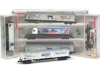 comprend : 4 fourgons, citerne & plateau transport de MERCEDES semi-remorque 'VICTORINOX' (PEU COURANT)