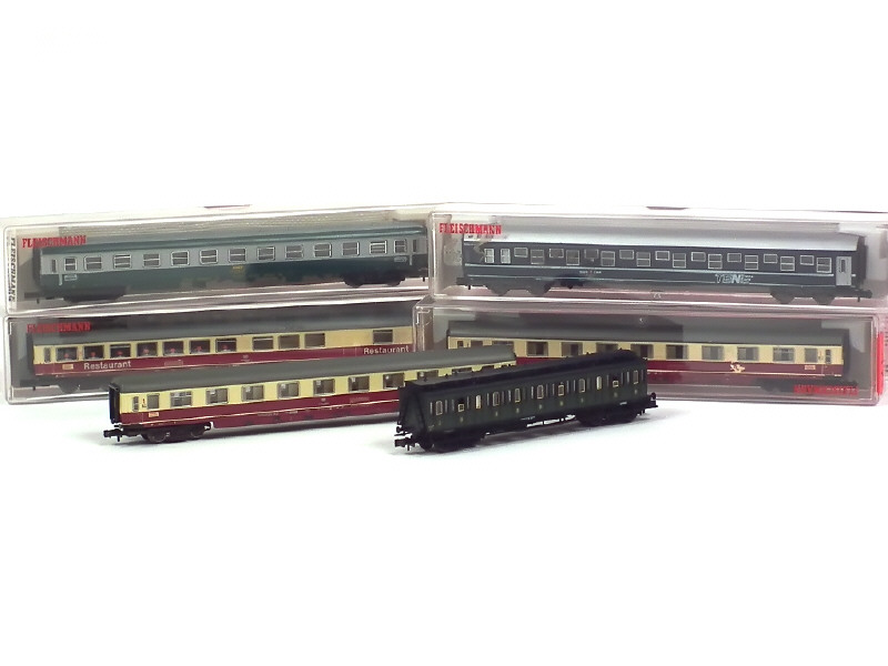 FLEISCHMANN 'N' (ALLEMAGNE) Ensemble de 6 matériels ferroviaires