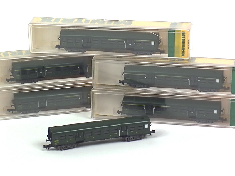 MINITRIX 'N' (ALLEMAGNE) Ensemble de 6 voitures de voyageurs vert