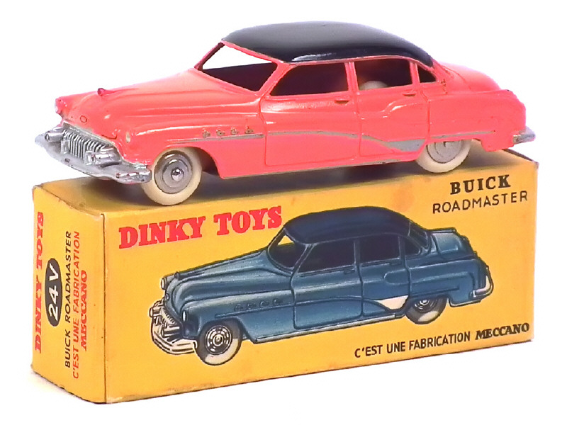 DINKY TOYS (FRANCE) 24V BUICK ROADMASTER (version avec intérieur de toit quadrillé & jantes chromées) saumon, toit noir