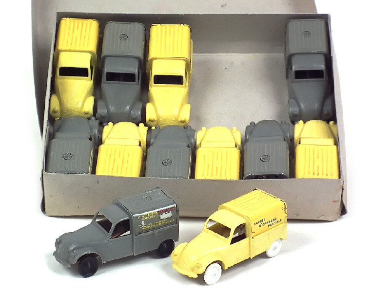 contient : 6 modèles 'CAISSE D'EPARGNE POSTALE' (dont un avec traces d'oxydation sur le plancher) & 6 autres 'PONTS ET CHAUSSEES DU JURA' (moteurs à friction fonctionnent)