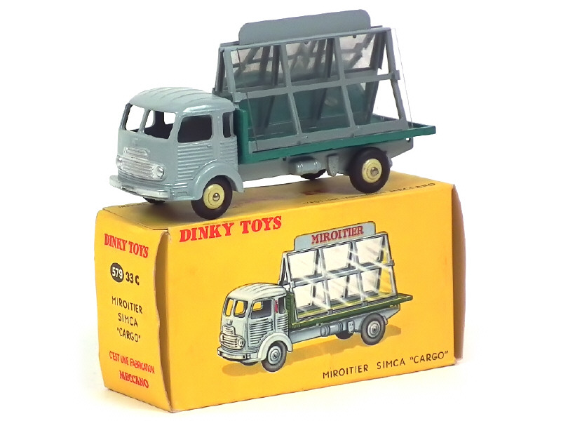 DINKY TOYS (FRANCE) 33C SIMCA CARGO Miroitier 'SAINT GOBAIN' (version export sans publicité) gris clair, plateau vert & jantes crème