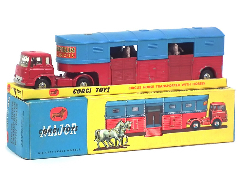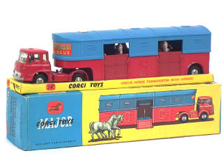 CORGI TOYS (GB) 1130 BEDFORD TK Transport de chevaux 'CHIPPERFIELDS CIRCUS' rouge & bleu ciel