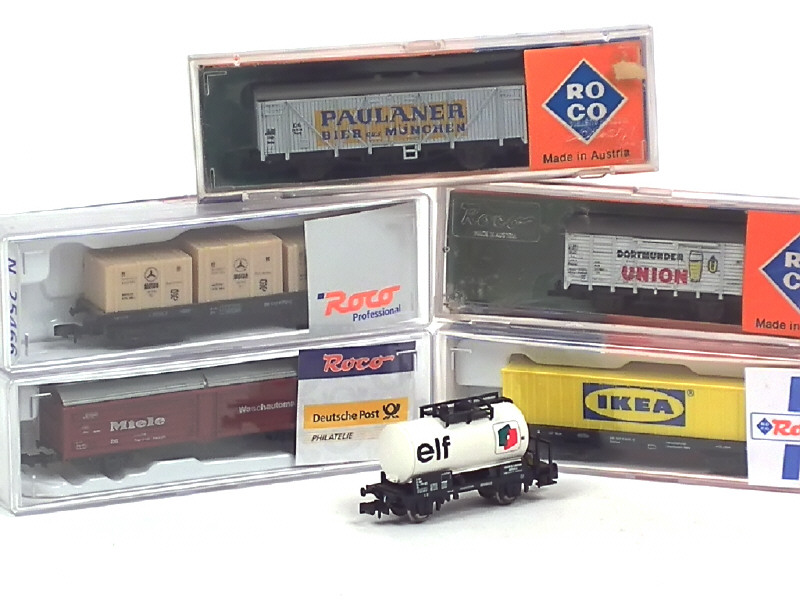 comprend les publicités : ELF, UNION, MIELE, IKEA, MERCEDES, PAULANER & DORTMUNDER UNION - on y retrouve les marques : ARNOLD, ROCO & MINITRIX - 5 boîtes non conformes