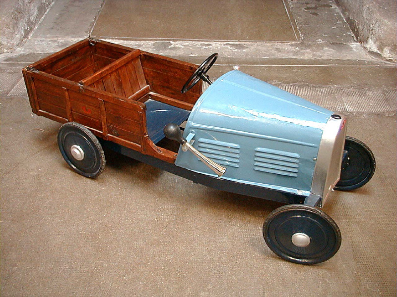 EUREKA (FRANCE) Camionnette pick-up à pédales des années 1930 bleu & bois
