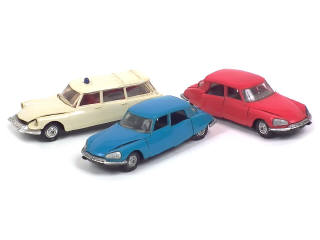 comprend : ID 19 ambulance (mauvaise fixation du hayon inférieur) & DS 21 (2 exemplaires différents dont un avec très légères traces de peinture)