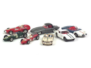états de 'A' à 'C' - comprend : JAGUAR type E (2 exemplaires différents), MONZA GT, MARCOS VOLVO, VANWALL, FERRARI (pneus non conformes) & LOTUS CLIMAX - on y retrouve les marques : CORGI TOYS & TEKNO (DANEMARK)