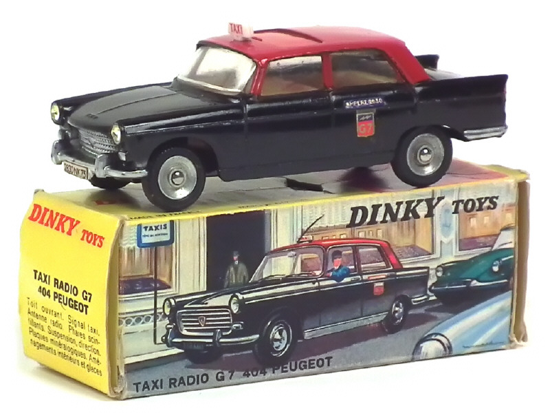 DINKY TOYS (FRANCE) 1400 PEUGEOT 404 'TAXI G7' noir, toit rouge