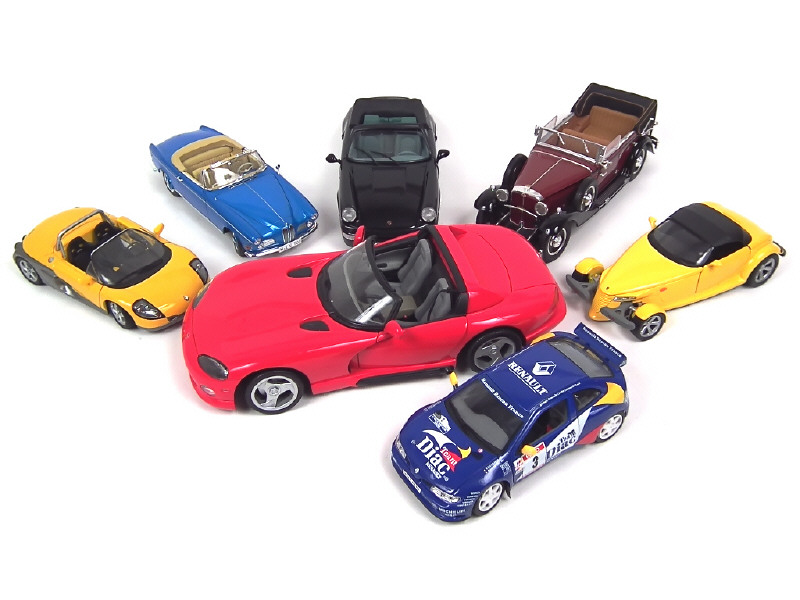 différentes échelles - comprend : BMW 503, CHRYSLER VIPER, MAYBACH DS8 ZEPPELIN, PLYMOUTH PROWLER, PORSCHE 911 & RENAULT MEGANE (2 exemplaires différents) - on y retrouve notamment les marques : ANSON & JADI - petits manques & parties cassées