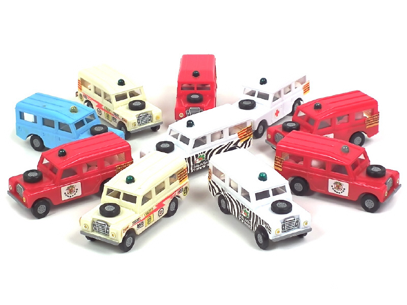 réalisation en plastique - comprend notamment : BOMBEROS, FOTO SAFARI, RALLY, ambulances - la plupart des véhicules contient des bonbons - petits manques