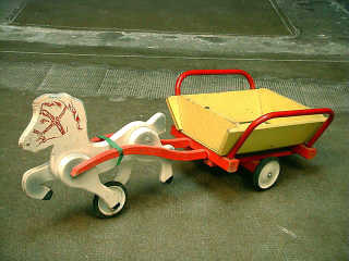 DIVERS Charrette tirée par un cheval jaune, rouge & blanc