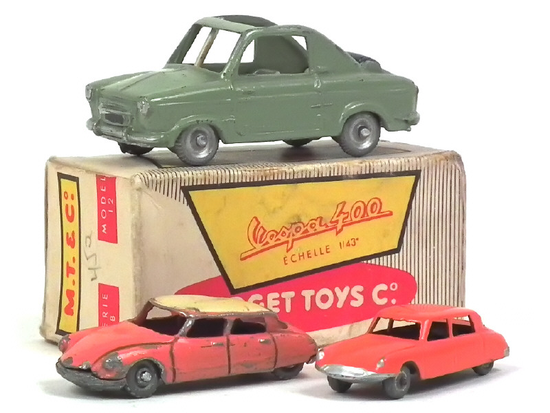 différentes échelles - comprend : VESPA 400 (état 'C.c') & DS19 (2 exemplaires différents états 'A-' & 'E') - on y retrouve les marques : MIDGET TOYS & GITANES
