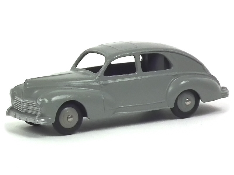 DINKY TOYS (FRANCE) 24R PEUGEOT 203 Petite lunette arrière (version avec intérieur de toit lisse & feu de stop) gris moyen, jantes identiques