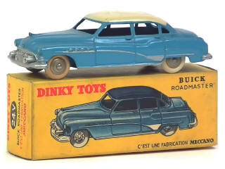 DINKY TOYS (FRANCE) 24V BUICK ROADMASTER (version avec intérieur de toit quadrillé & jantes chromées) bleu, toit crème
