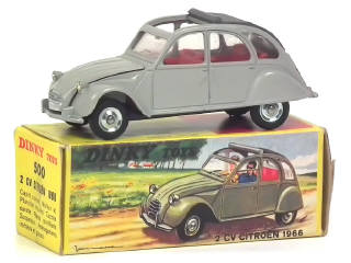 DINKY TOYS (FRANCE) 500 CITROËN 2CV Décapotée gris clair, capote gris foncé