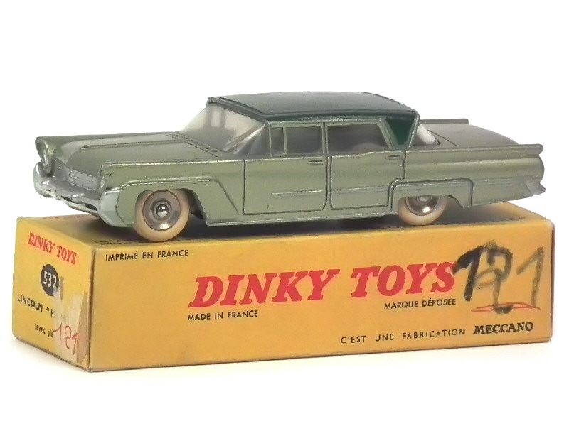 DINKY TOYS (FRANCE) 532 LINCOLN PREMIERE (version avec jantes concaves) vert métal, toit vert foncé