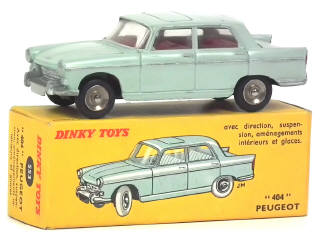 DINKY TOYS (FRANCE) 553 PEUGEOT 404 (premier moule) vert d'eau, intérieur rouge