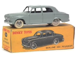 DINKY TOYS (FRANCE) 24B PEUGEOT 403 (version sans vitre & avec jantes convexes) gris clair