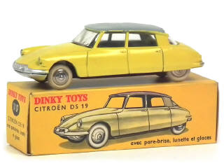 DINKY TOYS (FRANCE) 24CP CITROËN DS 19 (version avec vitres & jantes convexes) jaune citron, toit gris clair