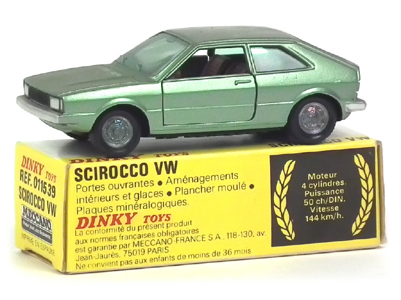 DINKY TOYS (FRANCE) 1539 VOLKSWAGEN SCIROCCO (made in SPAIN) vert métal