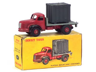 DINKY TOYS (FRANCE) 34B BERLIET Plateau avec container (version avec goupille) rouge, plateau gris clair