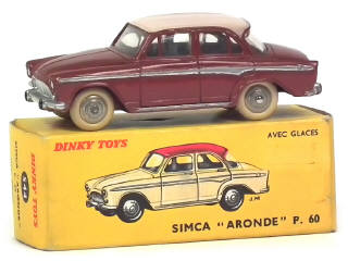 DINKY TOYS (FRANCE) 544 SIMCA ARONDE P60 (version avec jantes convexes) brique, toit crème