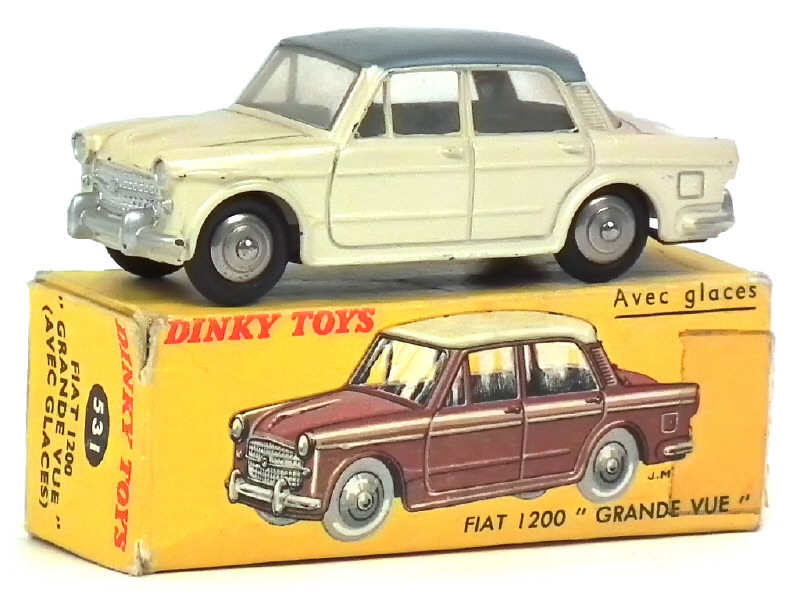 DINKY TOYS (FRANCE) 531 FIAT 1200 GRANDE VUE (version avec jantes convexes) crème, toit bleu métal
