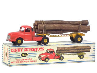 DINKY TOYS (FRANCE) 36A WILLEME Fardier (version avec jantes convexes & remorque ajourée) orange & jaune