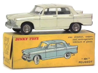 DINKY TOYS (FRANCE) 553 PEUGEOT 404 (premier moule) crème, intérieur grenat foncé