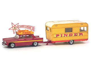 DINKY TOYS (FRANCE) 882 PEUGEOT 404 & Caravane 'PINDER' jaune, rouge & blanc