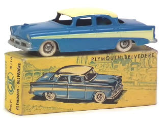 C.I.J. (FRANCE) 3/16 PLYMOUTH BELVEDERE bleu & crème