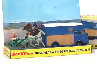 DINKY TOYS (FRANCE) 571 SAVIEM Goélette transport de chevaux bleu, bois, toit blanc