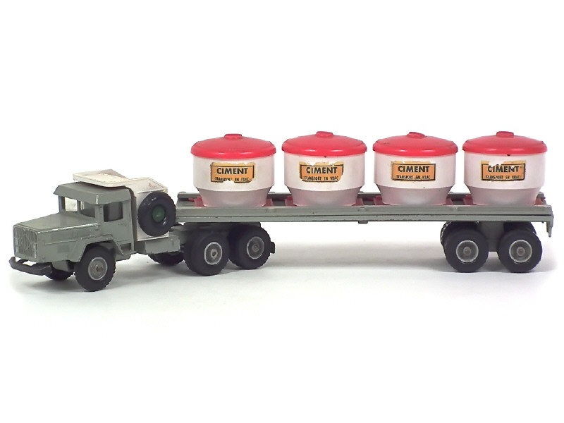SOLIDO (FRANCE) 301 UNIC Semi-remorque plateau transport de ciment gris, blanc & rouge