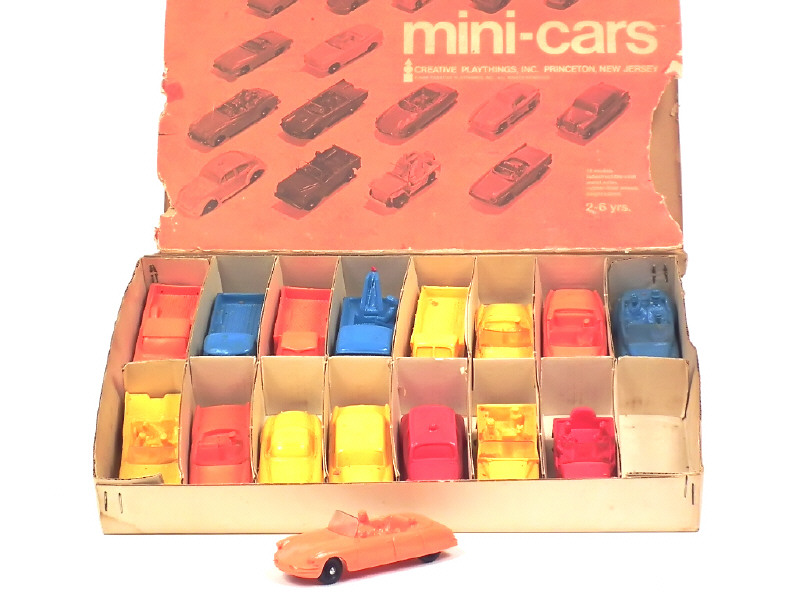 contient : CHEVROLET EL CAMINO, VOLKSWAGEN BULLI pick-up, COCCINELLE pompiers, DODGE plateau, AUSTIN plateau, JEEP dépanneuse, militaire, MERCEDES 180, 230 roadster, 300 SL, PEUGEOT 403 cabriolet, FORD THUNDERBIRD cabriolet, LAND ROVER, CITROEN DS 19 cabriolet , RENAULT FLORIDE cabriolet & BENTLEY cabriolet - carrosseries encrassées - rarissime coffret (avec séparations intérieures) destiné à l'exportation vers les Etats-Unis distribué par 'CREATIVE PLAYTHINGS PRINCETON NEW JERSEY' (étui incomplet)