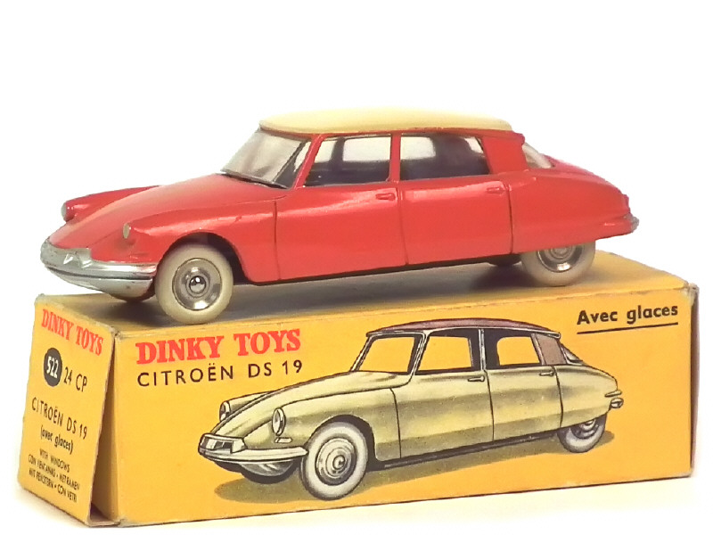 DINKY TOYS (FRANCE) 522 CITROËN DS 19 (version avec vitres & jantes concaves) orange, toit coquille d'oeuf