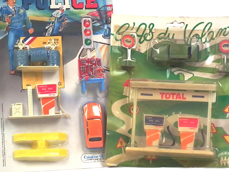 contient : CITROEN DS 21, îlot de ravitaillement 'TOTAL' & 2 panneaux de signalisation - sous blister jamais ouvert (quelques déchirures par endroits)