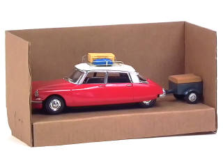 réalisation sur base SOLIDO - contient : CITROEN DS 19 1966 avec remorque & bagages sur galerie