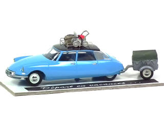 contient une CITROEN DS 19 avec remorque & bagages sur galerie