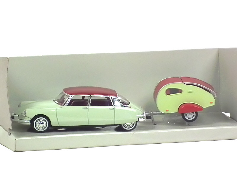 DIVERS CITROËN DS 19 avec caravane ivoire & rouge