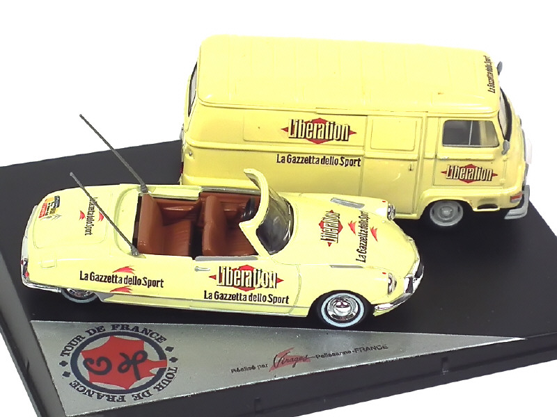 réalisation sur base SOLIDO - véhicules du tour de France 1962 - contient : RENAULT ESTAFETTE & CITROEN DS 19 cabriolet