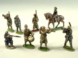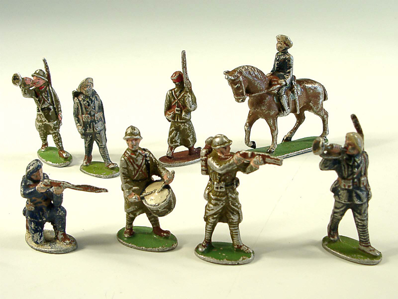 comprend : un tirailleur sénégalais, 3 soldats de l'infanterie & 4 chasseurs alpins - 2 extrémités de fusils cassées