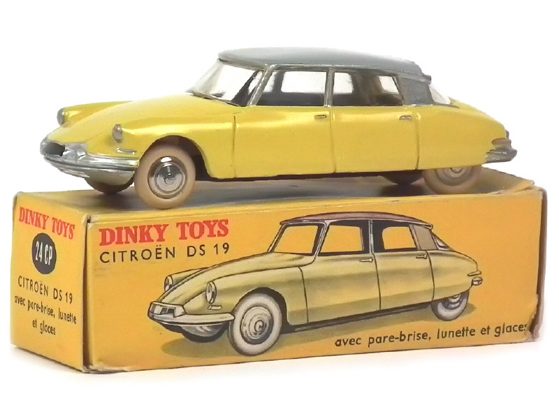 DINKY TOYS (FRANCE) 24CP CITROËN DS 19 (version avec vitres & jantes convexes) jaune citron, toit gris clair